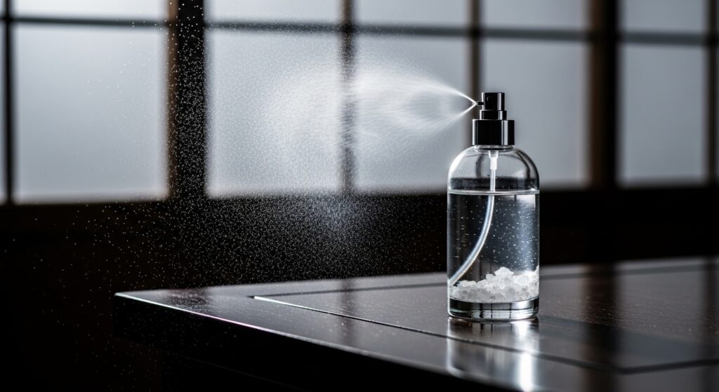 スプレーに配合された微細な塩の粒子は、空間の物理的な清浄度を高めるわけではありませんが、使用者の意識において「ここは清潔で神聖な場所である」という認識を強固にします。